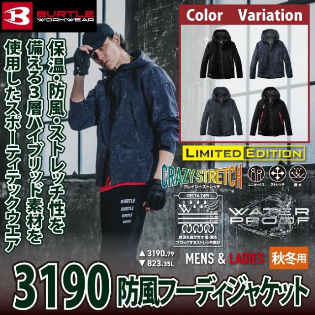 バートル BURTLE 作業服 作業着 2025秋冬新作 3190 防風フーディジャケット XXL おしゃれ 撥水 防風 耐水