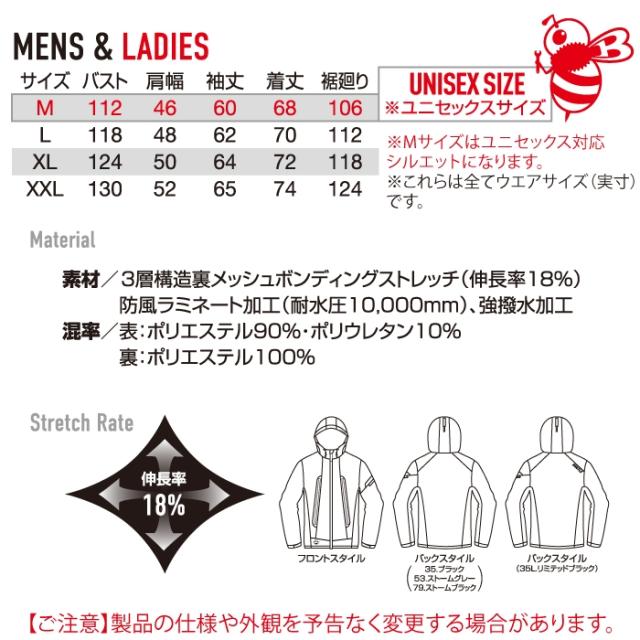 ◇素材:3層構造裏メッシュボンディングストレッチ(伸長率18%)・防風ラミネート加工(耐水圧10000mm)・強撥水加工