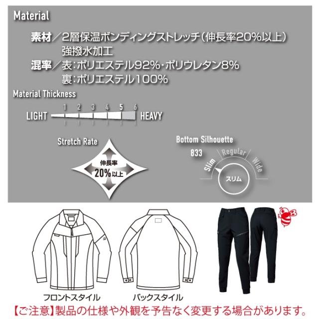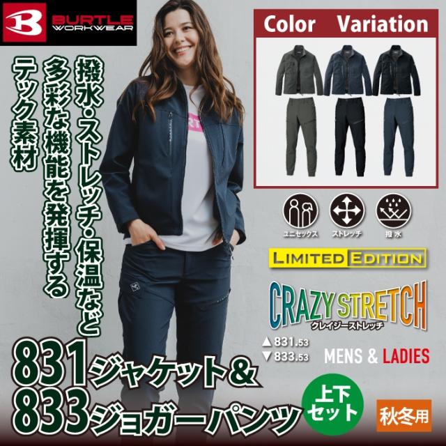 バートル BURTLE 作業服 作業着 上下セット 831 ジャケットS-XL と 833 ジョガーパンツ S-XL 作業ズボン おしゃれ 秋冬 撥水 保温