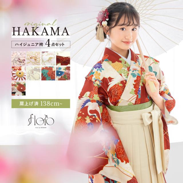 【予約】袴セット 卒業式 小学生 女の子 ジュニア 白 緑 水色 赤 紺 ピンク アイボリー 梅 鶴 花柄 floro 二尺袖 着物 13歳 ジュニア袴 着物セット 子供 中学生 十三参り ハーフ成人式 購入 販売 創美苑 送料無料 身長138から175cm対応