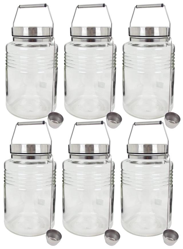 ◆商品名:アデリア(ADERIA) 【 MCコンテナー 4L レードル付き 6個セット 日本製 化粧箱入 】 梅酒瓶 保存容器 梅瓶 保存瓶 米びつ ステンレスキャ