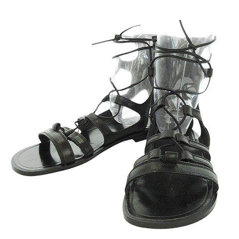 【中古】ピッピシック PIPPICHIC グラディエーターサンダル フラット レザー レースアップ リボン 36 23cm 黒