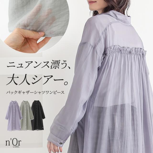シャツワンピース ロング レディース ワンピース 長袖 羽織 襟付き シアー 透け感 レイヤード 重ね着 ギャザー フリル 【TP】 ロングワンピース シャツワンピ n'OrLABEL ノア—ルレーベル 大人女子 大人可愛い お洒落可愛い 大人カジュアル ベーシック ニュアンス ラフ エフォートレス オフィスカジュアル 上品 きれいめ ナチュラル ミモレ丈 ロング丈 ドロップショルダー Aライン 無地 シースルー おうちで洗える 薄手 春 夏 秋 ロングシーズン カジュアル シンプル キレカジ フェミニン ガーリー 可愛い系 ゆったり ゆる 楽ちん ストレスフリー 動きやすい お尻が隠れる 二の腕カバー Sサイズ Mサイズ Lサイズ LLサイズ 3Lサイズ XLサイズ フリーサイズ ぽっちゃり 体型カバー 大きいサイズ プラスサイズ 10代 20代 30代 40代 50代 60代 低身長 女子会 通学 お買い物 お出掛け 旅行 リゾート おしゃれ お洒落 osharewalker オシャレウォーカー おしゃれうぉーかー パープル 紫 ラベンダー グリーン 緑 カーキ ブラック 黒[ID]13do0g4[n'OrLABELバックギャザーシアーシャツワンピース]