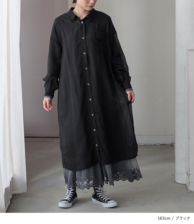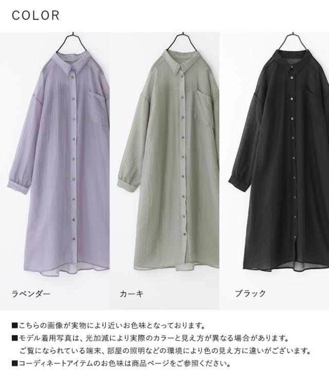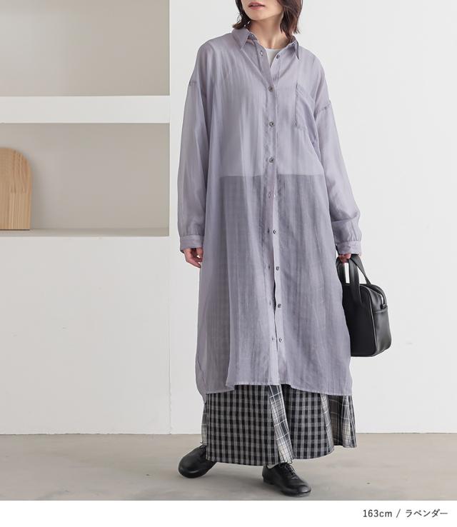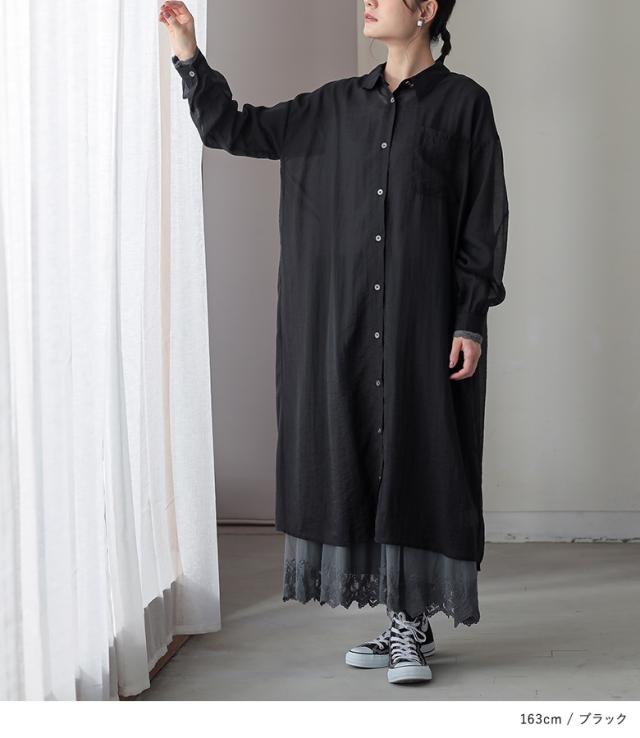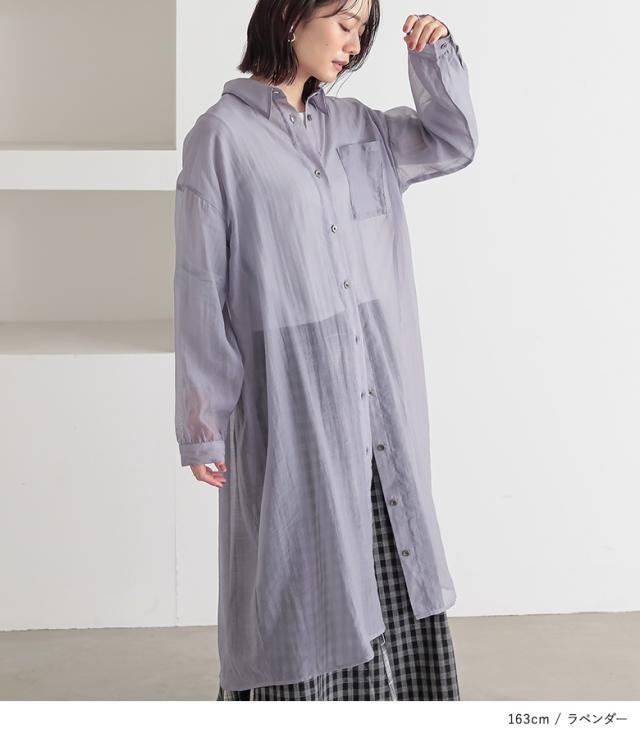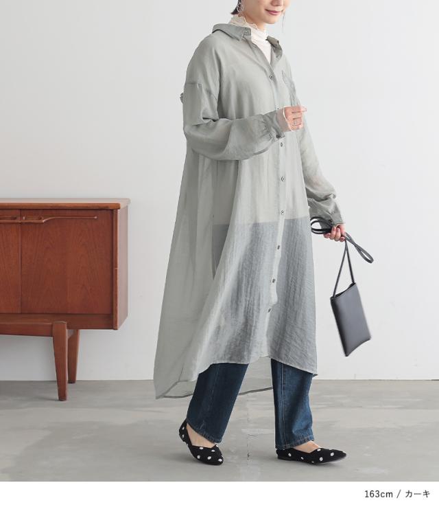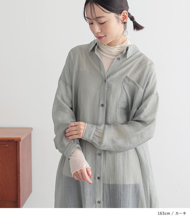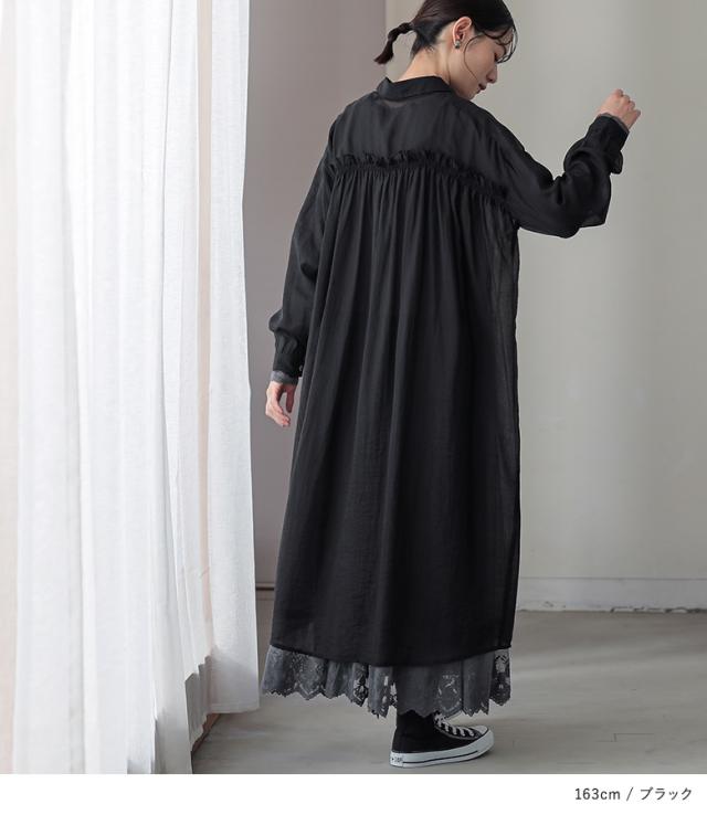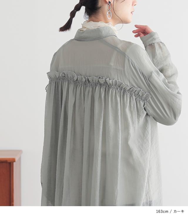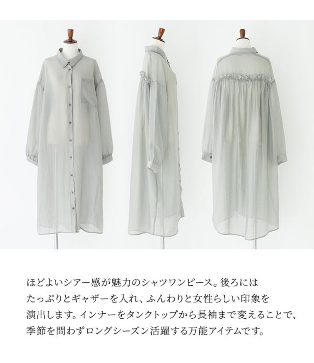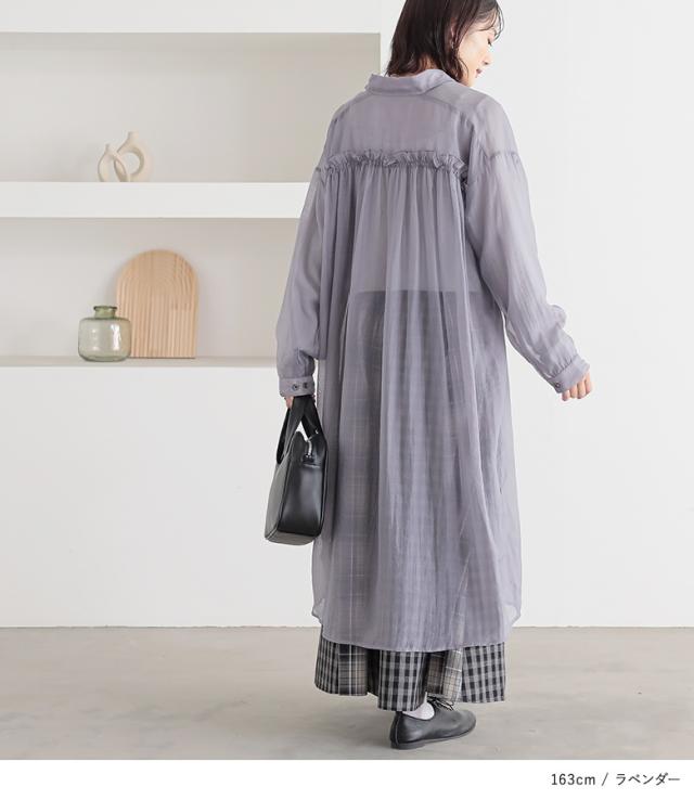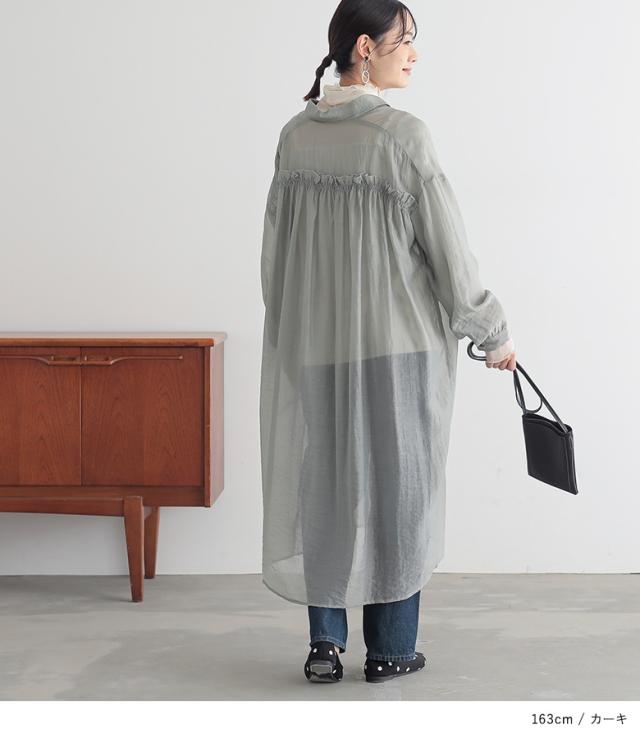 <冬新作>『バックギャザーシアーシャツワンピース』※メール便可※【10】[シャツワンピース ロング レディース 長袖 羽織 シアー 透け感 レイヤード 重ね着 ギャザー フリル 体型カバー 春 夏 秋]