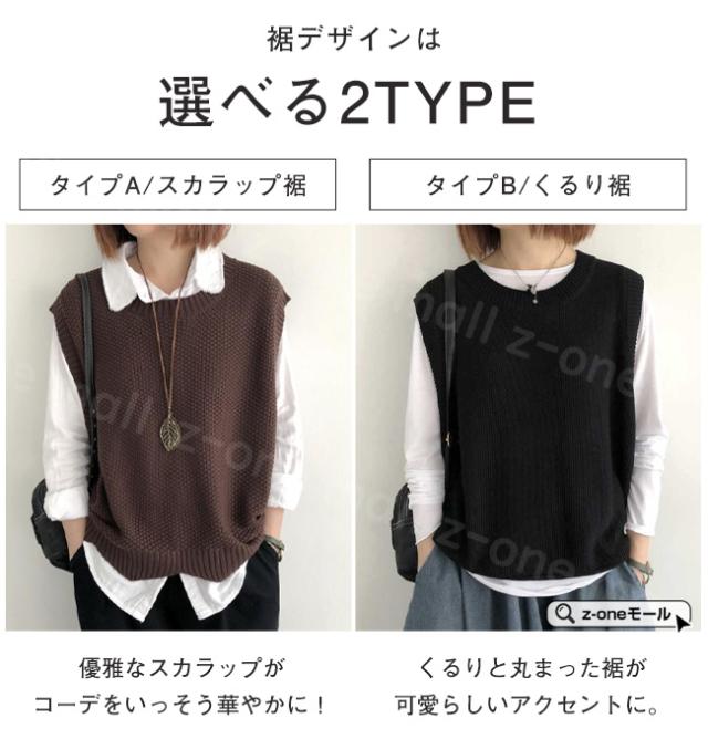 <1点1,250円!2点購入&クーポンで>ニット ベスト レディース ニットベスト 2TYPE スカラップ裾 くるり裾 ニット セーター 冬新作 送料無料 重ね着 ラウンドネック 体型カバー 洗えるニット ノースリーブ トップス 着回し 着痩せ 無地 ホワイトデー 卒業式