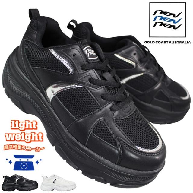 ネブ 厚底スニーカー nev656 ホワイト・ブラック 23cm〜24.5cm レディース ジュニア キッズ 女の子 カジュアルシューズ 厚底シューズ ダッドスニーカー 紐靴 ネヴオーストラリア NEV AUSTRALIA