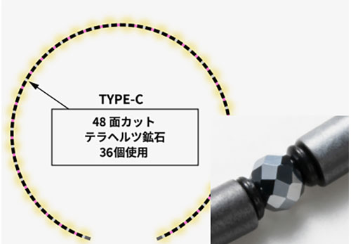 磨き上げた48面カットにより、宝石のような輝きに仕上げたテラヘルツ鉱石を採用