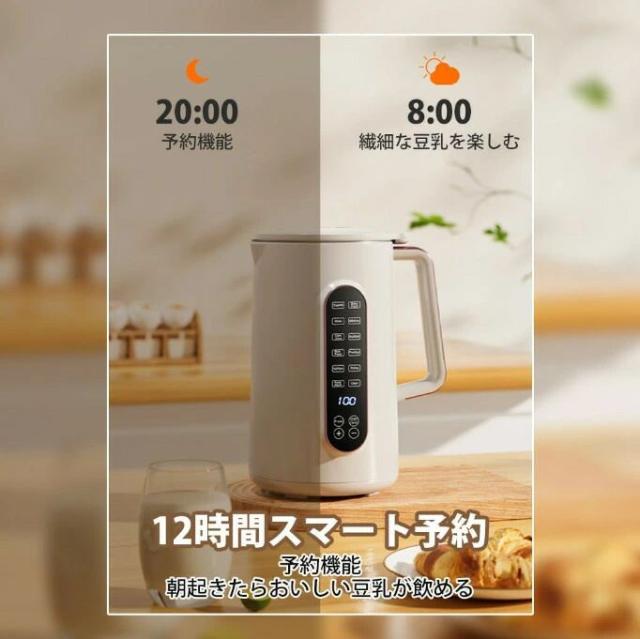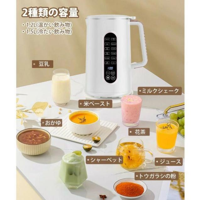 栄養とおビタミンの補充:新鮮な果物や野菜を豆乳に合わせて加熱したり混ぜたりしながら、栄養を保ちます。容量は1200ml(温かい飲み物)・1500ml(冷たい飲み物)で約28分で一度に1-7人分は作れます。主婦や育児中のママなど健康意識が高い方にとって欠かせないアイテムです