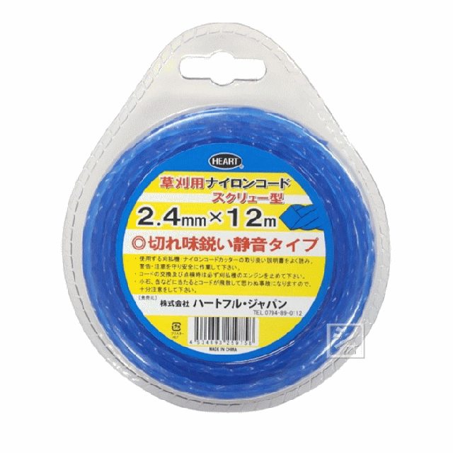 ハートフルジャパン 草刈用 ナイロンコード スクリュー型 2.4mm×12m 【メール便送料無料】