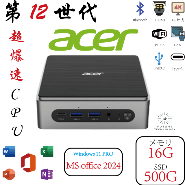 2025最新 ミニpc Acer N355 MS office 2024 搭載 Type-c給電 小型 デスクトップパソコン 一体型pc Windows11 在宅勤務 省スペース パソコン office付き