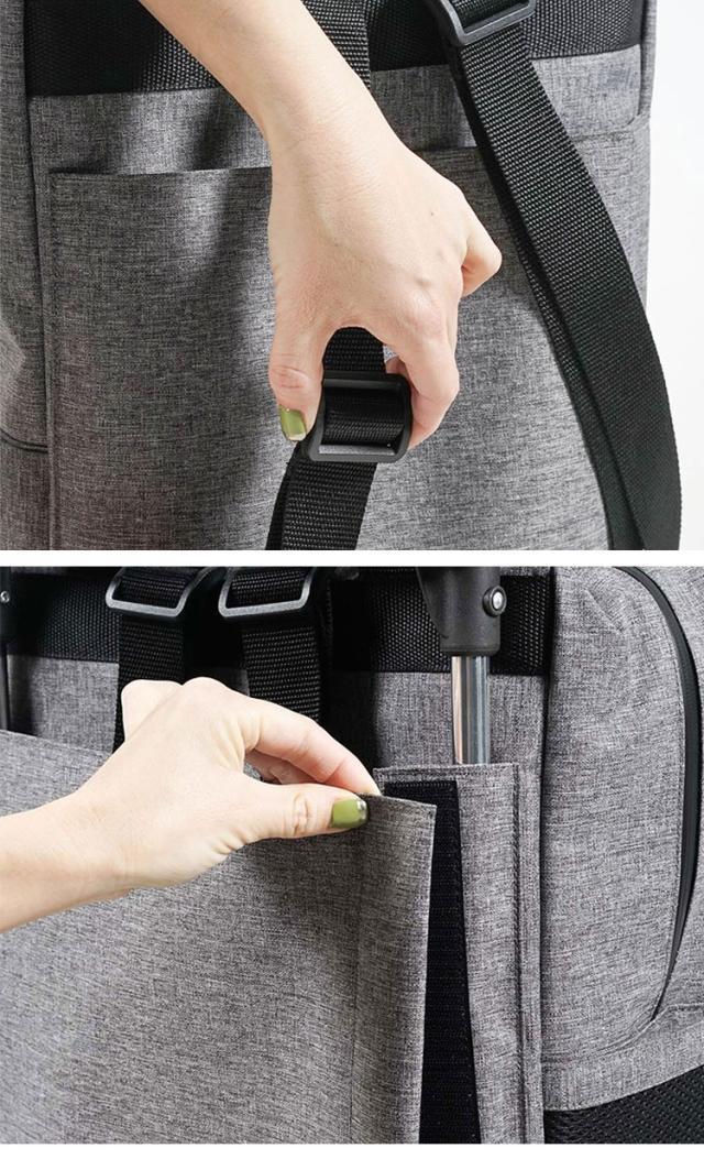 ・カートにバッグを取り付ける際、ショルダーベルトは最短に調整してください。
