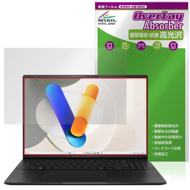 ASUS Vivobook S16 M5606 保護 フィルム OverLay Absorber 高光沢 for エイスース ビボブック 衝撃吸収 高光沢 ハードコート 抗菌