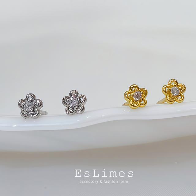 小ぶりピアス レディース お花 CZ キュービックジルコニア 小さめ 大人可愛い シルバー ゴールド 18kgp カジュアル おしゃれ 女性 オフィス プレゼント ホワイトデーお返し