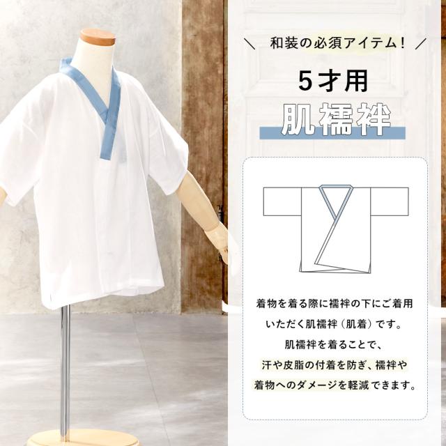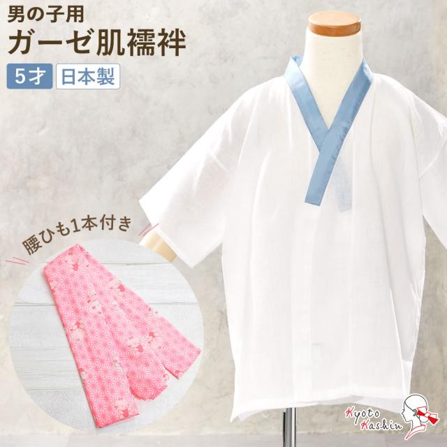 【2枚までメール送料無料】子供用 肌襦袢 753 5歳 男の子 日本製 洗える 腰ひも付き 白 青 水色 青衿 襦袢 和装下着 肌着 インナー 綿 コットン ガーゼ 腰紐 紐付き キッズ こども 子ども用 男児 5才 753 七五三 着物 袴 祭り 稽古 通年