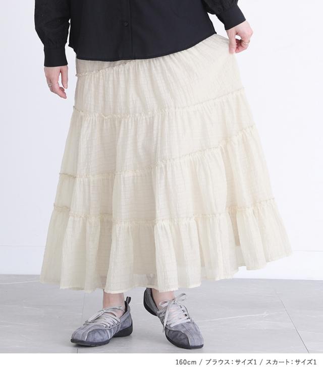 23日最大1200円クーポン 【送料無料】『コットンレースリボン付きブラウス×シアーティアードスカートコーデ2点SET』【メール便不可】【30】[2点コーデセット 2025 レディース ブラウス トップス 長袖 シャツ スカート ロングスカート]