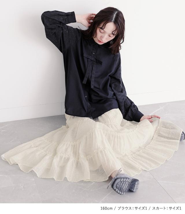 ブラウス レディース トップス 長袖 シャツ 襟付き コットンレース 切替 リボン レイヤード 重ね着 春 秋 冬 ボタンシャツ 前開きシャツ 襟付きシャツ パフスリーブ ショート丈 ミディ丈 ミドル丈 切り替え 無地 レース ロングシーズン カジュアル レトロ クラシカル シンプル ナチュラル キレカジ フェミニン ガーリー 二の腕カバー Sサイズ Mサイズ Lサイズ LLサイズ 3Lサイズ XLサイズ ぽっちゃり 体型カバー 大きいサイズ プラスサイズ 10代 20代 30代 40代 50代 60代 おしゃれ お洒落 流行 可愛い系 大人女子 大人可愛い お洒落可愛い 大人カジュアル 上品 きれいめ スカート ロングスカート ティアードスカート フレア シアー 裏地付き ウエストゴム ボトムス マキシスカート フレアスカート ロング丈 マキシ丈 10分丈 12分丈 ティアード スクエア チェック柄 おうちで洗える モード アイボリー ブラック 202509 2点セット プレゼント レディース 福袋 コーディネートセット コーデセット 中身が見える福袋 上下セット ギフトセット[ID]12co0q1
