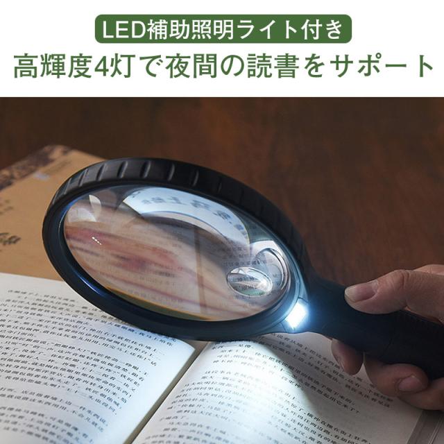 拡大鏡 虫眼鏡 LEDライト付き ルーペ付き デスクルーペ デスクライト 拡大率5倍 電池式 親子鏡 収納袋付 新聞 雑誌 辞書 地図 説明書 老眼鏡