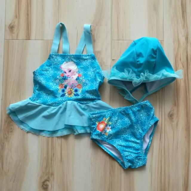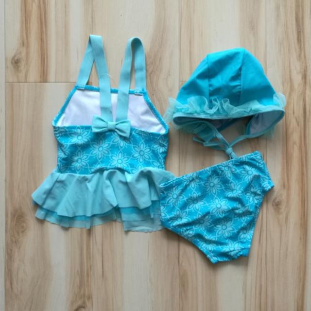 【アウトレット/新品】水着 女の子 セパレート ブルー キッズ 水着 女の子 ワンピース フリル かわいい水着 帽子付き キッズ水着 子供水着 ワンピース キッズ 水着 海水浴 水着 キッズ こども水着 幼稚園 保育園 小学生 子ども水着 プール 海【タグが切れています】