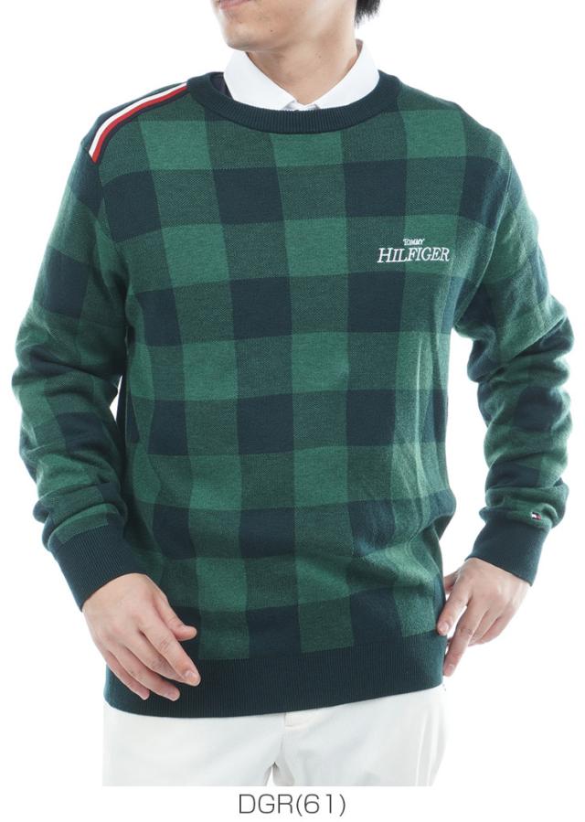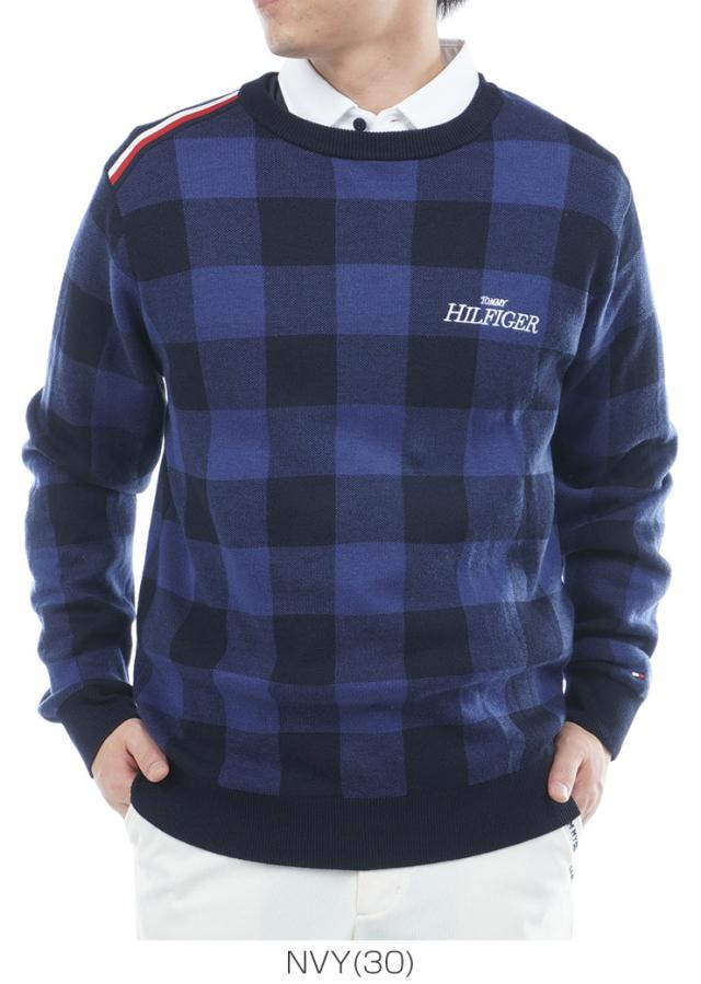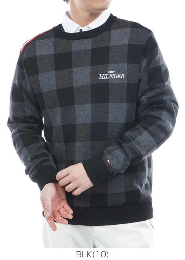 トミーヒルフィガー チェックジャガード クルーネック ニットセーター ゴルフウェア メンズ 2025年秋冬モデル M-3L THMA571