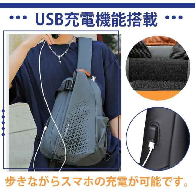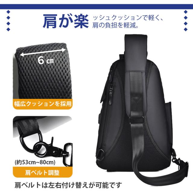 \即納/ボディバッグ メンズ 大容量 レディース 軽量 斜めがけ ショルダーバック カジュアル 多機能バッグ 撥水 usbポート プレゼン