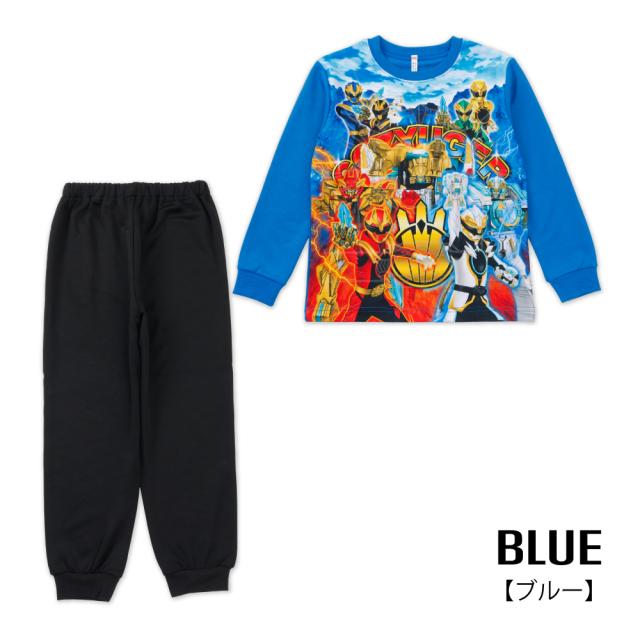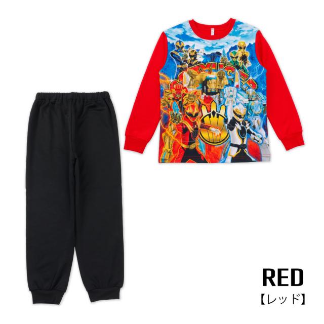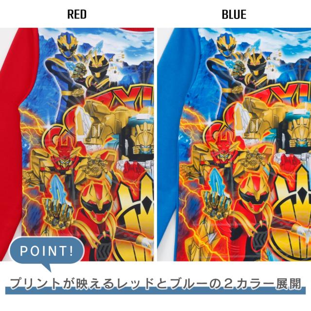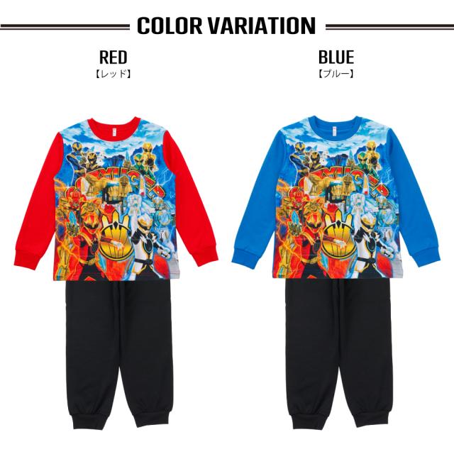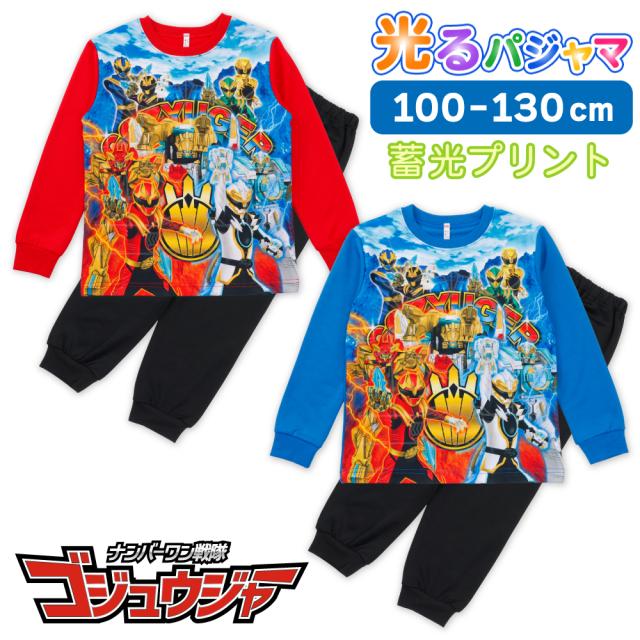 ナンバーワン戦隊ゴジュウジャー 光るパジャマ 肌に触れる内側 綿100% スウェット セットアップ 長袖 子供 キッズ ジュニア レッド ブルー 100 110 120 130 男の子 ボーイズ ギフト プレゼント 林間学校 修学旅行