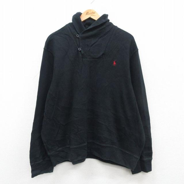 【商品名】 XL★古着 ラルフローレン 長袖 ブランド セーター メンズ 90年代 90s 無地 コットン モックネック 黒【spe】