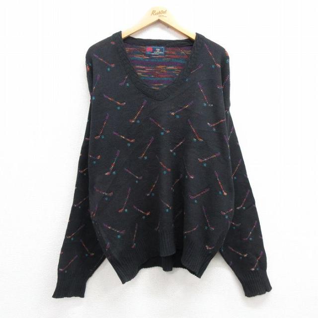 古着 ラルフローレン Ralph Lauren 長袖 ブランド セーター メンズ 90年代 90s 無地 コットン モックネック 黒 ブラック spe X 中古 古着