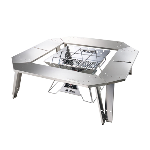 ワンアクションで簡単組立! 軽量で丸洗いもできる! 耐熱性に優れた、オールステンレス製の囲炉裏テーブル