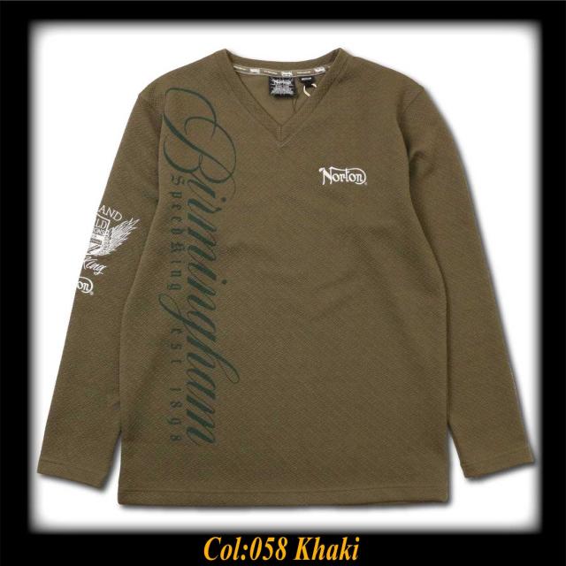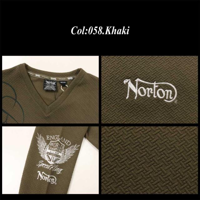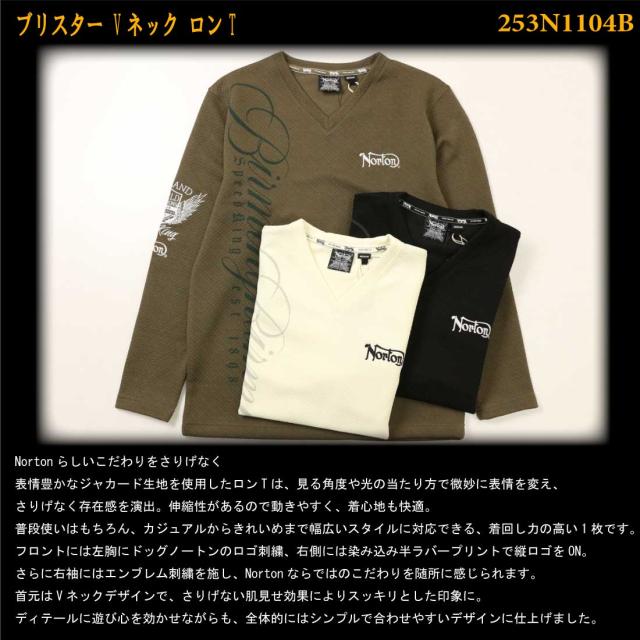 Norton ノートン 服 長袖 Tシャツ カットソー 253N1104B ブリスター Vネック ロンT 刺繍 ロングTシャツ プリント ロゴ アメカジ バイカー メンズ