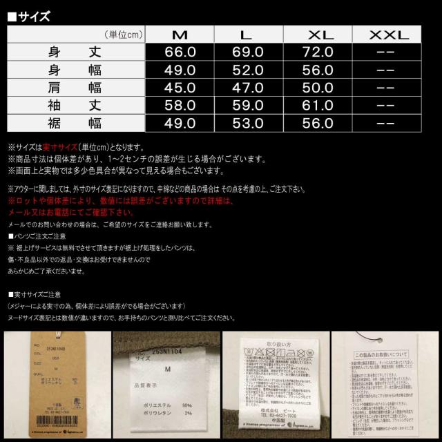 (ヌードサイズ表記とは数値が違いますので、お手持ちのパンツと測り比べてご注文ください。)