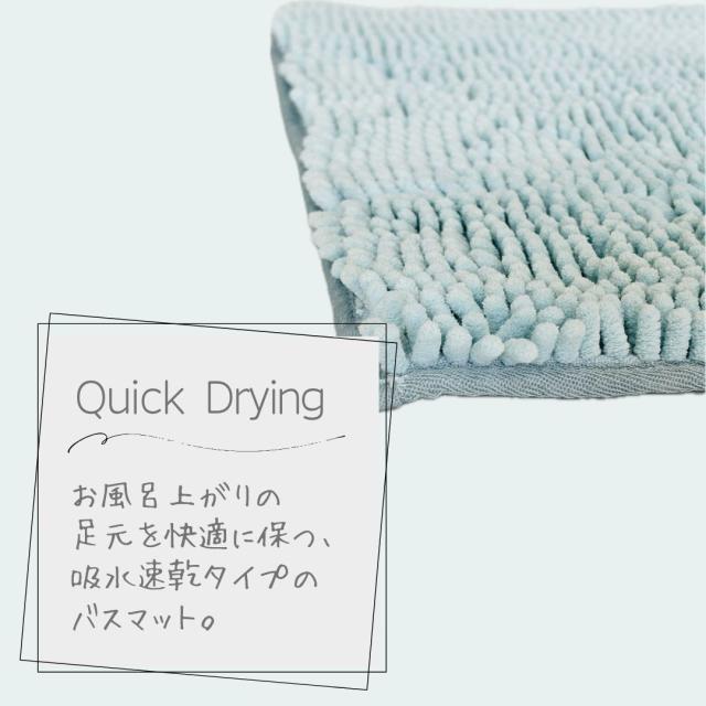 ふんわりとしたマイクロファイバー素材が水分をすばやく吸収し、サラッと快適な踏み心地を実現します。
