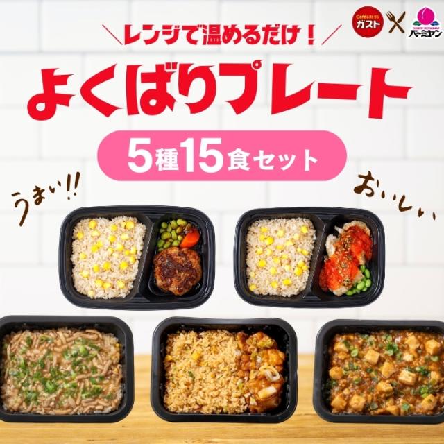 ガストの人気プレート2種、バーミヤンの人気炒飯プレート3種が入った大満足のプレートセット!レンジで簡単調理!毎日異なる味が楽しめるよくばりプレートセット♪お一人暮らしの方やお忙しい主婦の方におすすめです!