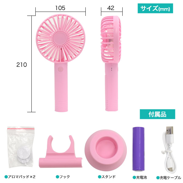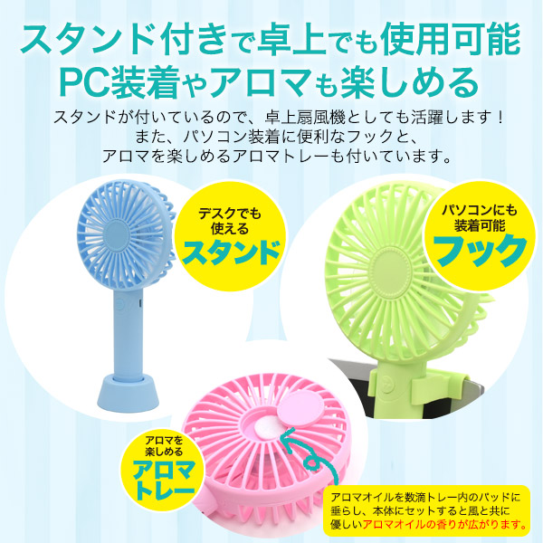 ハンディファン 充電式 扇風機 PSE取得済みバッテリー 大容量2500mAh フック スタンド アロマトレー コンパクト デスク 卓上 送料無料 ひんやり 涼感 夏 家電 1000円ポッキリ ポイント消化 1000円ぽっきり かわいい