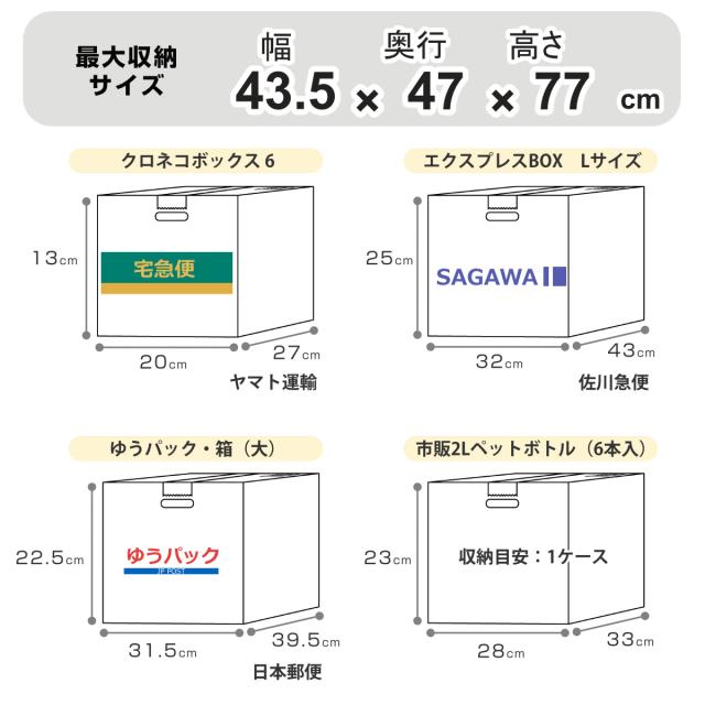 収納目安としては、エクスプレスBOX・Lサイズ×3ケースが入ります。