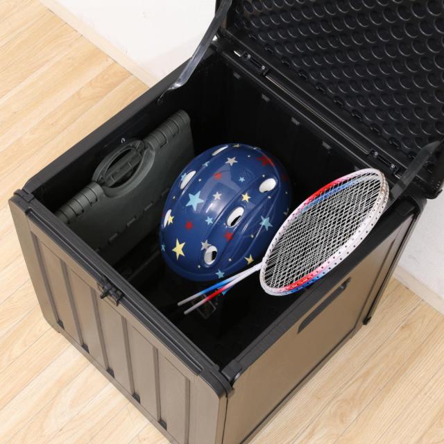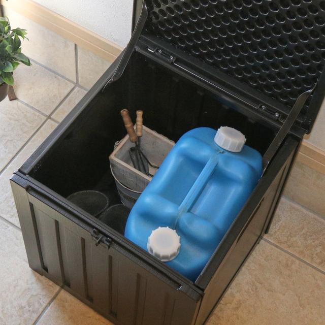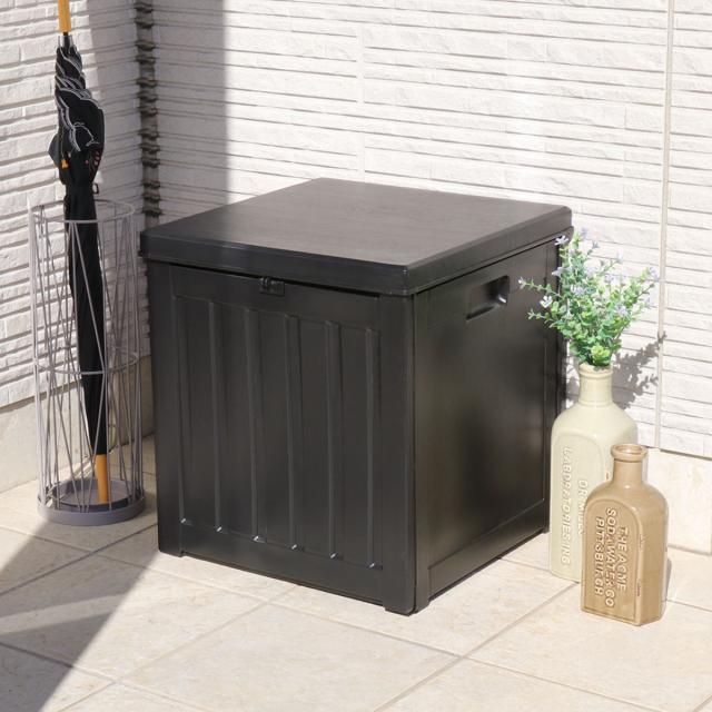 シンプルなデザインのコンパクト収納ボックスです。玄関や庭はもちろん、室内ではおもちゃ収納など幅広く活用できます。
