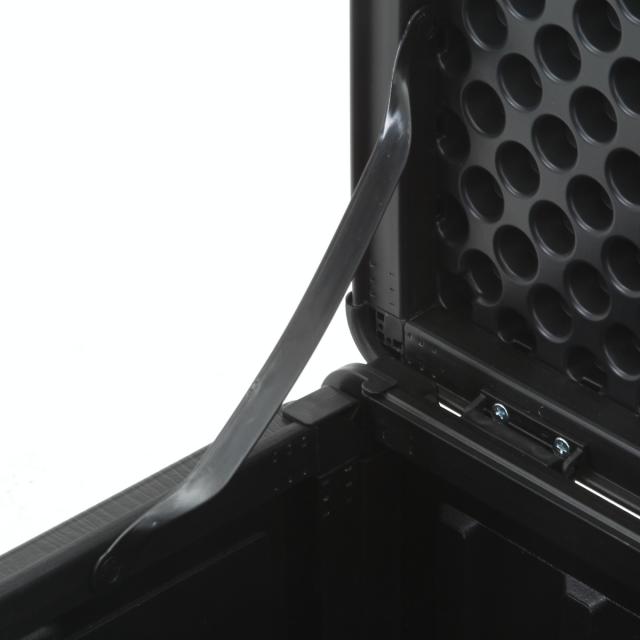 蓋には鍵を掛けられる穴があり、屋外でも安心して使用できます。