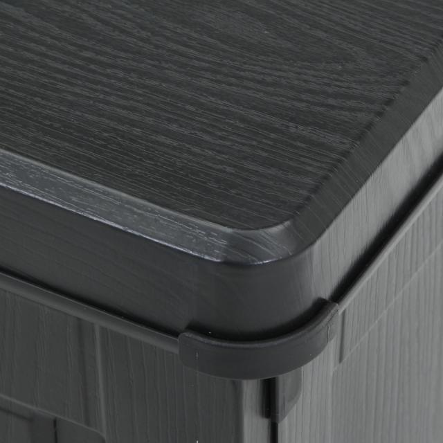 ブラックに木目模様を施した落ち着いたデザインで、室内にもなじみます。