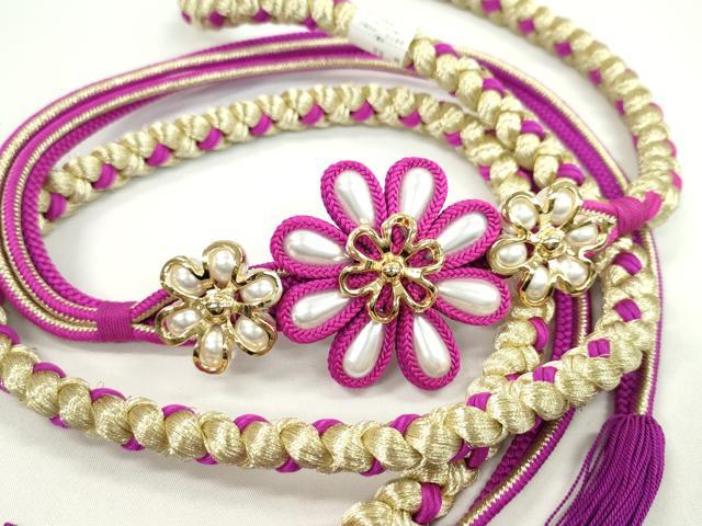 平和屋着物●和装小物 振袖用帯締め 飾り付き 翠嵐工房 パール 花 金糸 撚り房 日本製 逸品 未使用 CAAW4187ju