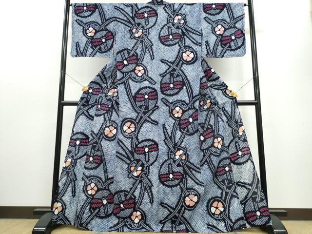 平和屋着物∴夏物 浴衣 有松鳴海絞り 団扇トンボ花文 綿 逸品 CAAW1019ng