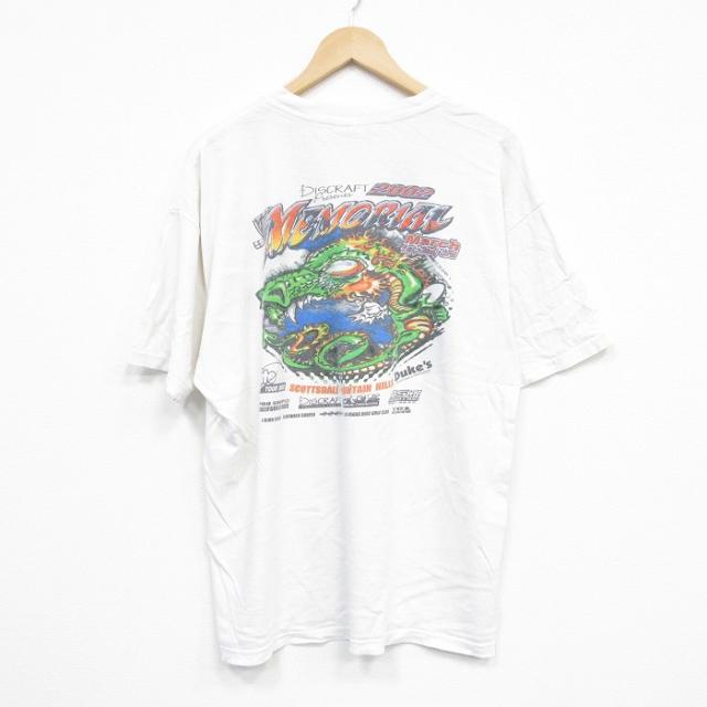 古着 半袖 ビンテージ Tシャツ メンズ 00年代 00s レース 企業広告 大きいサイズ コットン クルーネック 白 ホワイト XLサイズ 中古 古着