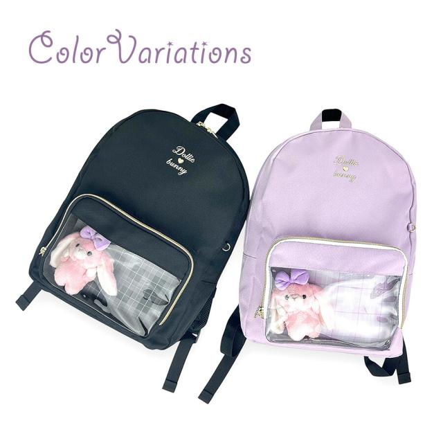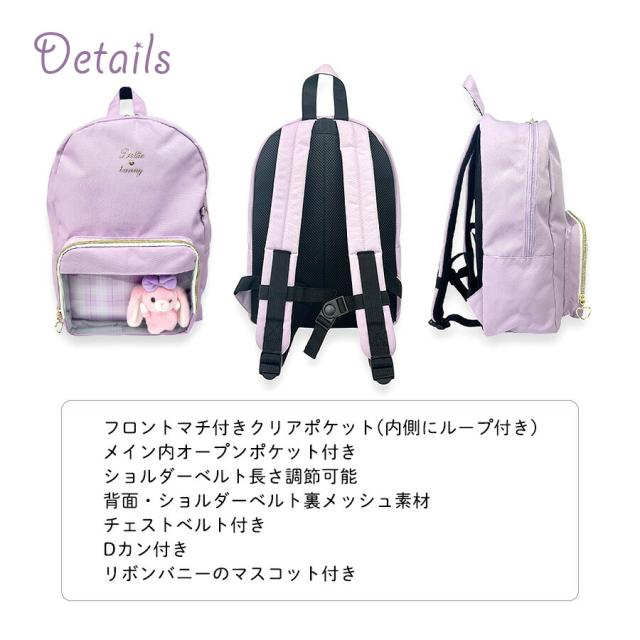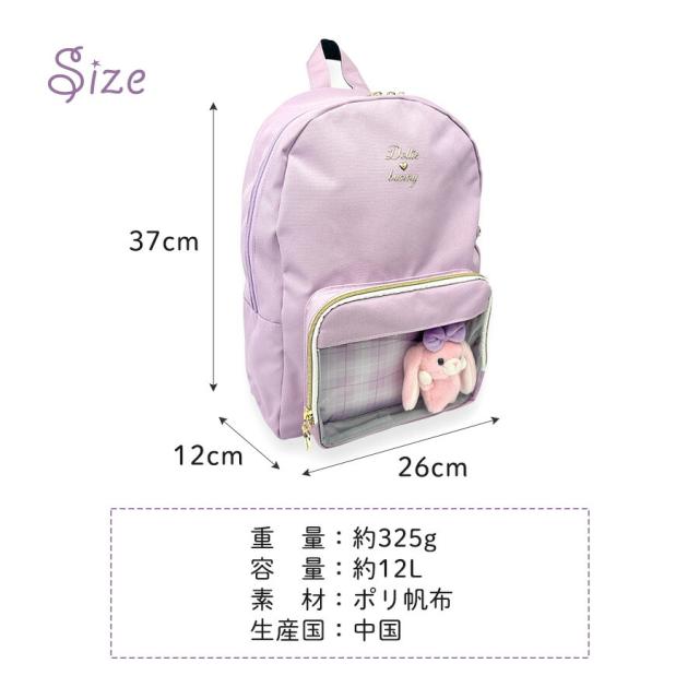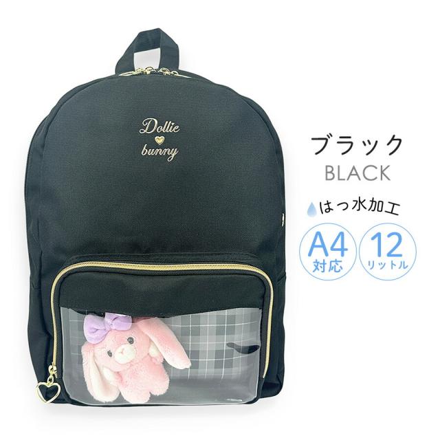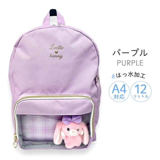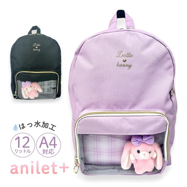 リュック キッズ 女の子 子供 小学生 かわいい おしゃれ ガーリー mnp-614 anilet+ アニレット リボンバニークリア窓 Dパックリュック 12L A4 はっ水 リュックサック デイパック うさぎチャーム 女子人気 遠足 修学旅行 小学生 中学生 黒 紫 プレゼント