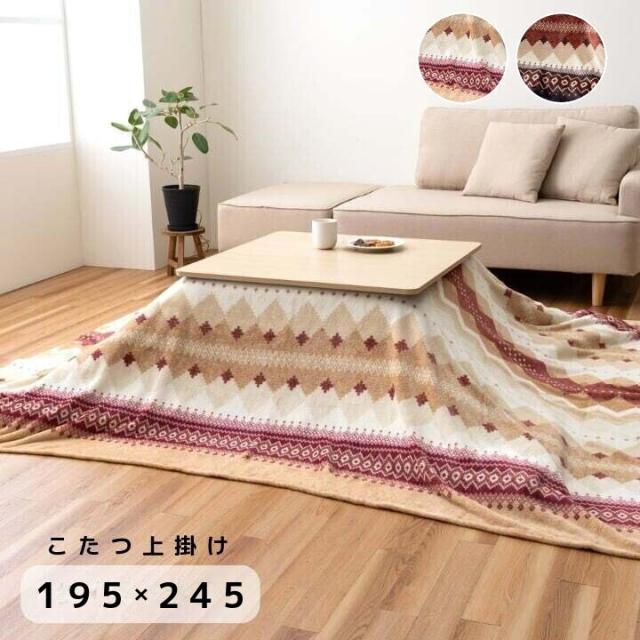 ラコム こたつ布団上掛け 洗える フェアアイル柄 フランネル やわらかい こたつ布団 汚れ防止 195×245cm ベージュ ネイビー