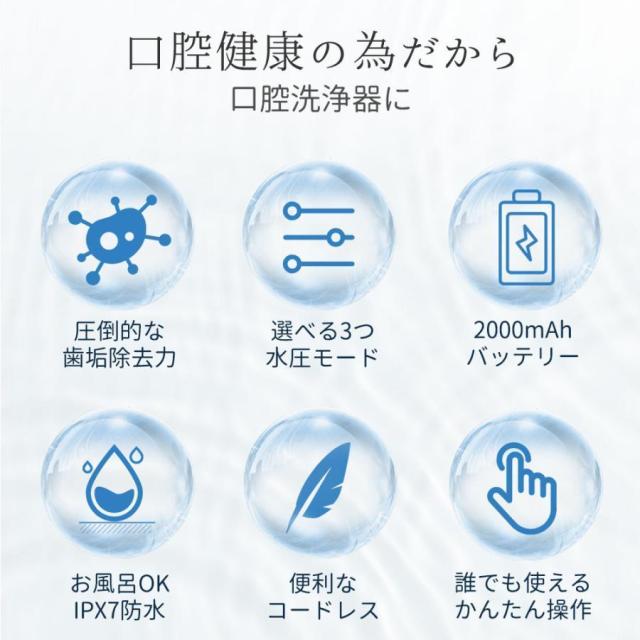 【IPX7完全防水設計&大容量水タンク】IPX7完全防水仕様で、洗面所やお風呂など湿気の多い場所で使用や保管できます。また、230mlの大容量水タンクで、一回の注水で口の中の隅々まで洗浄できます。それに、タンクは取り外し可能な設計なので、とても便利です。