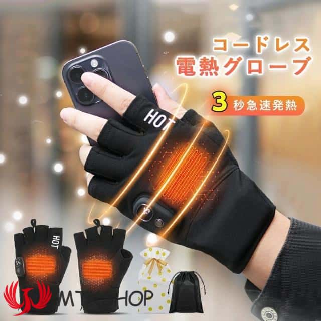 電熱手袋 電熱グローブ 2000mAh 5段温度調整 3時間連続使用 USB充電式 ヒーター手袋 インナーグローブ 液晶画面 指なし あったか手袋 ヒーターグローブ 男女兼用 防寒対策 ハンドウォーマー パソコン作業 デスクワーク 通勤 通学