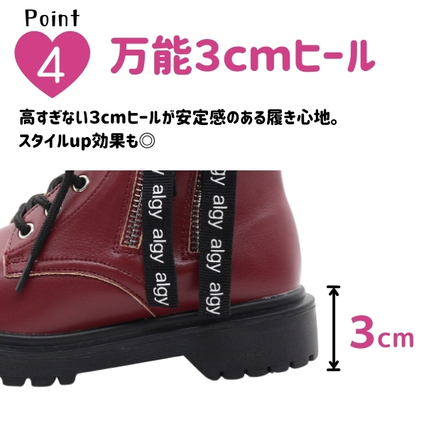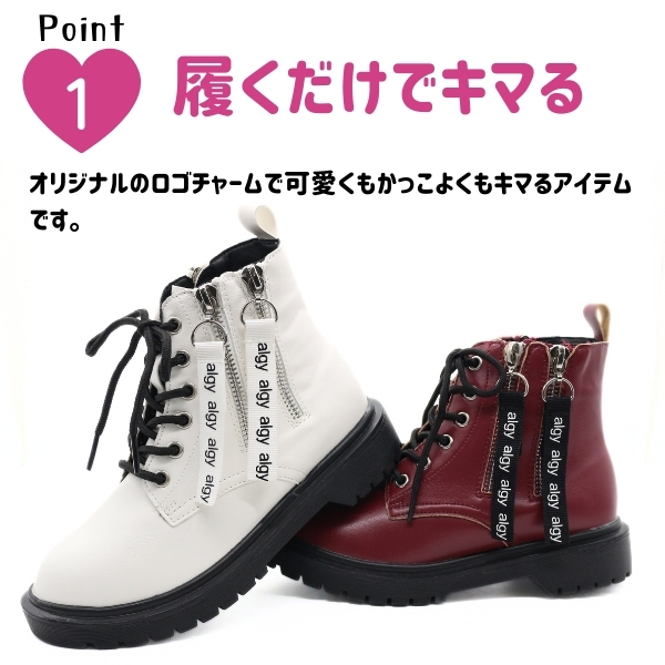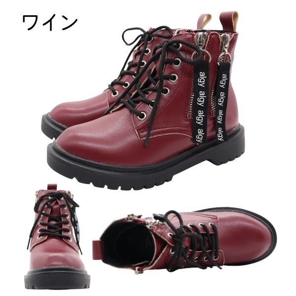 ALGY アルジー ショートブーツ キッズ ジュニア ティーンズ 靴 ファスナーブーツ 厚底 かわいい おしゃれ 黒 ブラック レッド 茶 秋 冬 送料無料 3463