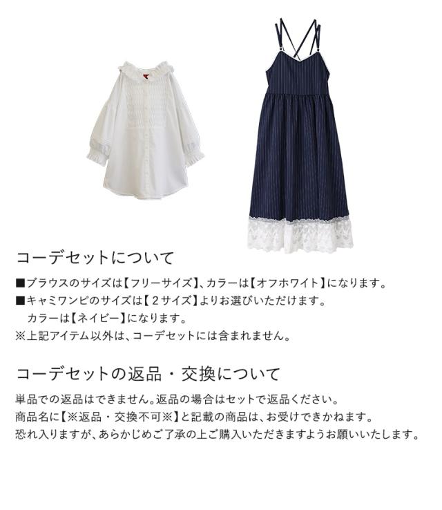 【送料無料】『フリルフードピンタックブラウス×ピンストライプキャミワンピースコーデ2点SET』【メール便不可】【30】[2点コーデセット 2025 レディース シャツ ブラウス プルオーバー ワンピース キャミワンピース]