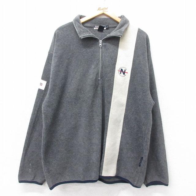 【商品名】 L★古着 ノーティカ 長袖 ブランド ハーフジップ フリース ジャケット メンズ 90年代 90s ワンポイントロゴ コンペティション USA製 グレー他