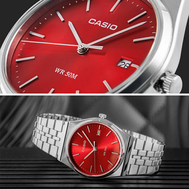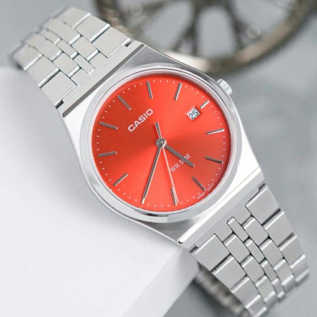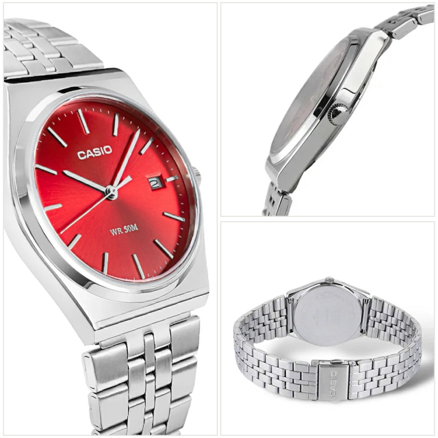 CASIO カシオ スタンダード MTP-B145D-4A2 メンズ レディース シルバー レッド 腕時計 アナログ