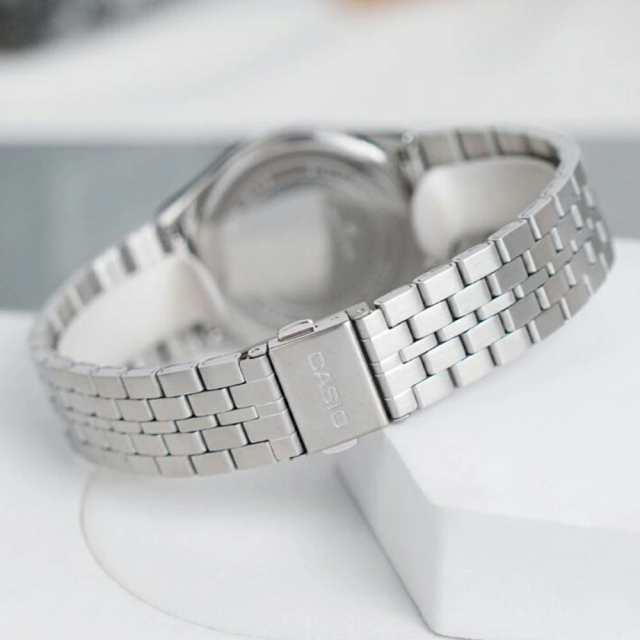 シルバーケースに華やかな文字盤が映えるアナログウォッチです。 上品さと優雅さを兼ね備えた特別なデザインです。