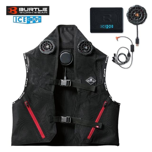 BURTLE(バートル) IC101S アイスクラフトベスト (ペルチェベスト) ブラック ペルチェファンユニット・バッテリ付きセット品 【熱中症対策、冷却プレート】